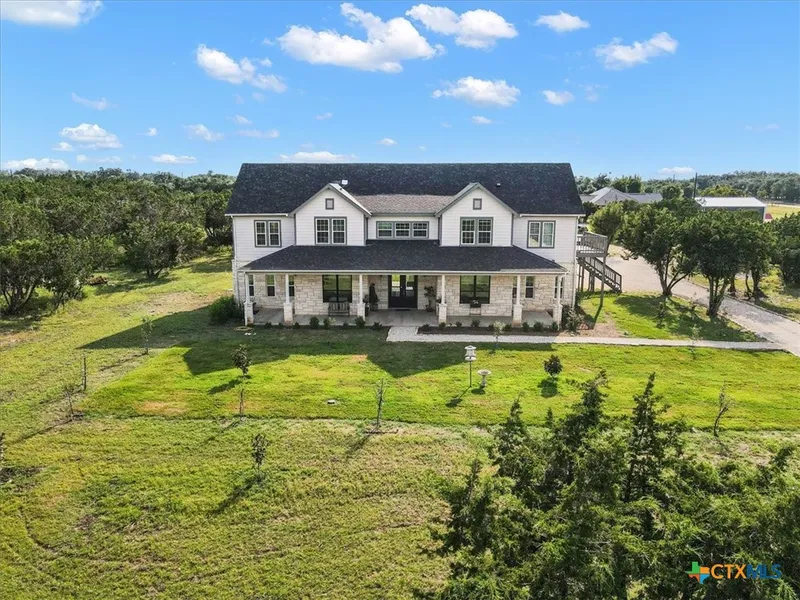 Welcome to 1911 CR 226, Florence, TX, a ranch-style retreat nestled on 2 acres of countryside offering breathtaking sunrises & sunsets to watch from your large front and back covered patios. This custom-built home spans three areas, providing a total of 8-bed, an office, 6-baths, and 1 half bath, ideal for living and entertaining. Minutes from TXR-138, US-190, and HWY 183, it blends tranquility with accessibility. The main area features impressive 10-ft ceilings on the 1st floor and 9-ft ceilings on the 2nd, showcasing a gourmet kitchen with quartz countertops, a farmhouse sink, custom cabinets, built-in oven, microwave, and a high-end Wolf range stove with dual additional ovens. Adjacent to the kitchen, a private office offers a serene workspace, while the downstairs primary bedroom suite indulges with a wet bath style bathroom, complete with a walk-in shower and soaking bathtub, and convenient sliding glass door access to the backyard. A second downstairs bedroom serves as a mother-in-law suite with its own full bath featuring a walk-in shower. Upstairs, three additional bedrooms provide ample space, with one bedroom connecting to a walk-in closet and through to a full bath. External staircases lead to separate areas perfect for college students. Comprising of 3-bed, 1-bath, a full kitchen, and another above the garage hosting an expansive game room with an open concept layout, full kitchen, and additional bathroom. The property offers a 3-car garage with a unique drive-through feature from the back, complemented by a full bath and ample storage space. Can't forget the substantial 30ft x 40ft storage unit includes a workshop area with full electricity, an office, and a full bath. Enjoy the convenience of city water and septic system designed for two homes. Enhancing the rural charm, a chicken coop with resident chickens are included. 1911 CR 226 combines functionality, rural charm to enjoy the comfort and enjoyment amidst the beauty of Florence, TX's countryside.