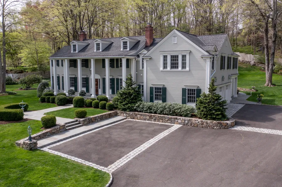 This CT Classic exudes the highest quality and meticulously care at every turn! 5 bedroom, 4 bath Colonial with commanding presence, thanks to gracious stone-pillared entrance, Belgium block drive, lush lawns, mature perennial gardens, and the best sledding hill around! The current owners completed a most thoughtful renovation and seamless addition w/custom millwork, Marvin windows and hardwood floors throughout. A welcome flow from the Library and Living room sharing 2-sided fireplace and French doors to the terrace with wet-bar in the library/office. The Dining room is 'aglow' with the raised hearth fireplace and privacy doors to the Butler Pantry with custom cabinetry & appliances. The premier Kitchen, sunny Breakfast & Family room w/fireplace and coffered ceilings are the heart of this treasured home! 5 bedrooms on the 2nd floor, private Master Suite with luxurious bath, heated floors and spectacular dressing room with beautiful built-ins. The spacious Master bedroom offers great light and 9ft ceilings. 2 additional ensuite bedrooms, with bedrooms 4 & 5 w/hallbath. 2nd floor laundry room and handsome office with custom cabinetry overlooks the backyard. Large LL playroom with great storage. Side entrance leads to backstairs, mudroom and 3-car garage. Stone terrace with access from several interior rooms. 2-acre property, meticulously manicured w/irrigation, 20KW generator and security system. Centrally located, move in and enjoy summer in historic Silvermine!