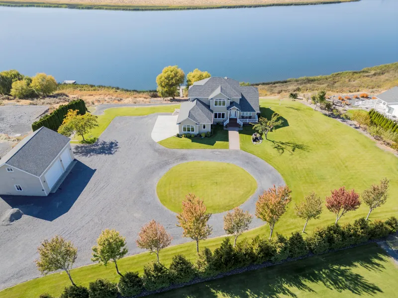 Stunning Waterfront Home with Western Exposure. Located in Neppel between Moses Lake and Ephrata this beautiful custom home on 2.05 acres has a 3 car garage and large detached shop with a loft area. Manicured lot w/asphalt driveway, lawn, garden, water feature and a private road down to the lake where a dock awaits all your lake adventures. This home has high vaulted ceilings with panoramic lake views and walkout daylight basement. More features include a gas fireplace, pellet stove, kitchenette in basement, laundry chute, surround sound speakers inside & out, 11' shop doors, RV Hookups at shop, 50amp & 30amp in shop, 50 yr architect laminate roof, reinforced foundation, fruit trees/berries and so much more!