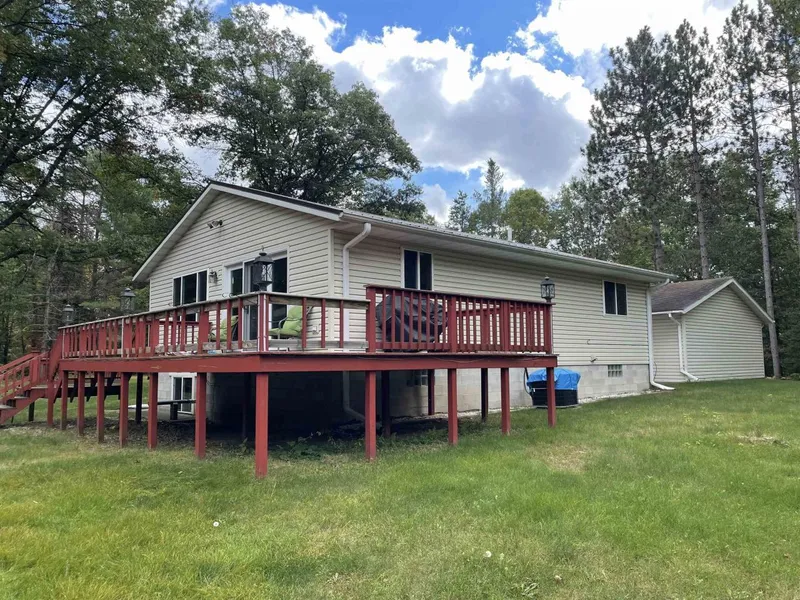 Secluded setting on 2+ acres of woods is the setting for the 2br, 1 bath raised ranch with lower level family room and unfinished area for storage or to finish as you like. As you sit on the wrap deck enjoy the serene woods and abundance of wildlife. 2 car detached garage, 1 car detached garage and 2 storage sheds.
