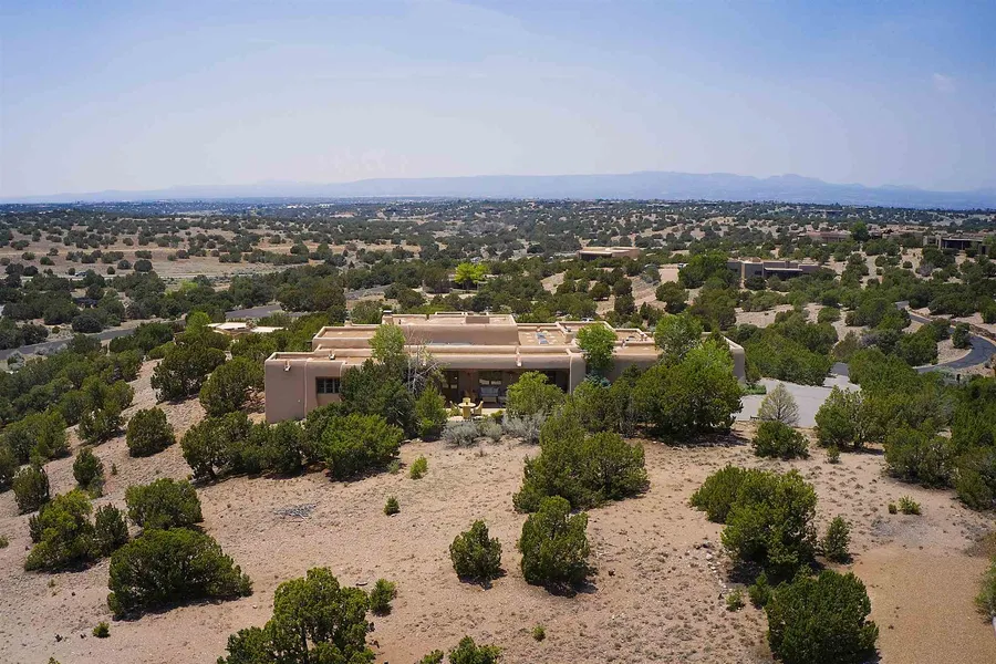 The quality of this quintessential Santa Fe style home is apparent from the moment you enter the courtyard with lush gardens, enticing dining and relaxing areas plus views of the Sangre de Cristo Mountains. Enter through old world doors into the spacious great room with immaculate details and views of the Jemez Mountains. This beautifully proportioned room is enhanced by traditional beams and corbels and a custom designed fireplace. Entertain your friends and family on the massive portal overlooking a dancing fountain with the backdrop of the western mountains. The sparkling kitchen has doors leading to both the sunrise and sunset portals to enjoy Santa Fe's long and lovely out door seasons. The sumptuous owners suite features a private sitting area with a kiva fireplace and doors to the portal. Completely separate is a second master suite and a third bedroom and bath that is a perfect media room or office. So few homes are premier examples of traditional Santa Fe style and yet have every convenience and feature of contemporary lifestyle. Add to this views of both mountain ranges and this one shouldn't be missed.