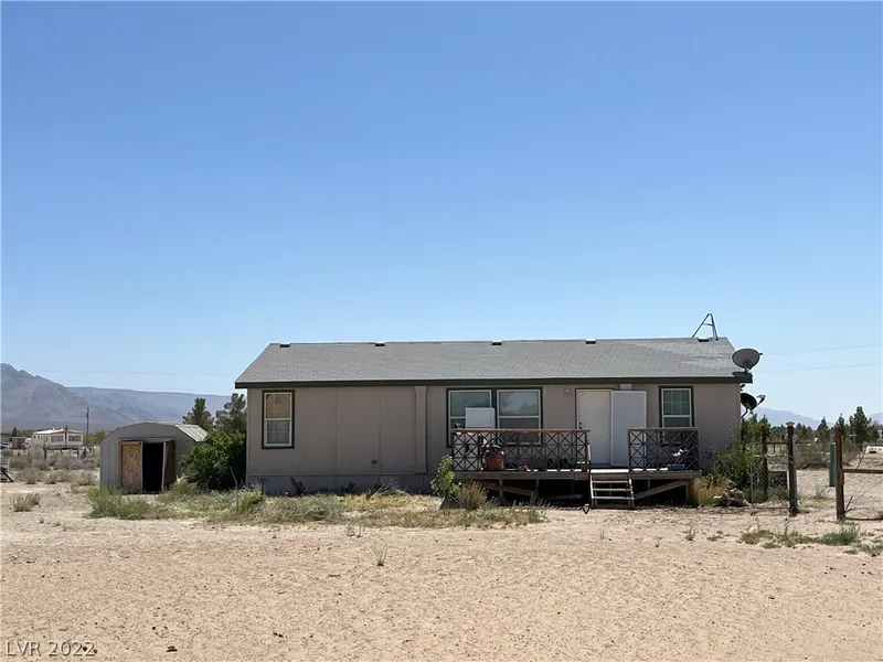 Rural zoning, well maintained manufactured home on a two acre lot, completely fenced. Shed for additional storage. Appliances will convey with the house. Sandy Valley is approximately 50 miles away from Las Vegas has public transportation on Monday and Friday, elementary, middle and high schools, fire station, post office, convenience stores, and gas stations. Sandy Valley offers peaceful, tranquil desert environment, horseback riding, ATV and off road traveling.