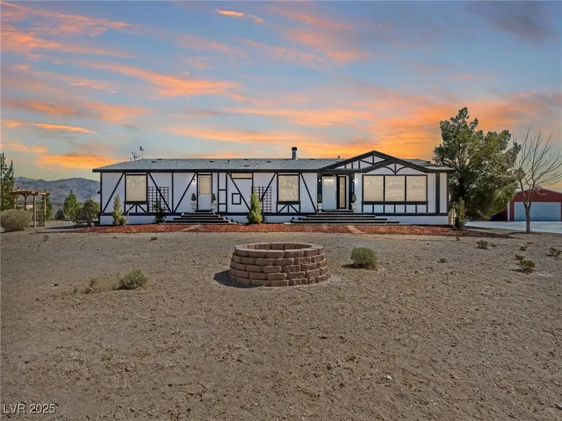 Welcome to your dream equestrian estate! This stunning Tudor style 2,599 sq. ft. home on 2+ acres is perfect for horse lovers & entertainers alike. The property boasts 4 expandable stalls, 2 training arenas, a tack room, wash rack with pavers & a dog-friendly air-conditioned puppy den. The fully fenced lot features a remote-controlled gate, a concrete horseshoe driveway, mature landscaping, fruit trees, & rosemary. The backyard oasis is ideal for gatherings with a BBQ, smoker, & paved patio. Inside, enjoy a cozy wood-burning fireplace, fresh paint, energy-efficient windows, new faucets, ceiling fans, & stylish trim. The all-electric home comes fully furnished with all appliances included! Double-glazed, tinted windows enhance comfort & efficiency. The skirting is stuccoed cinderblock, and a new well pump was installed 2 years ago. This exceptional home blends country charm with modern up...