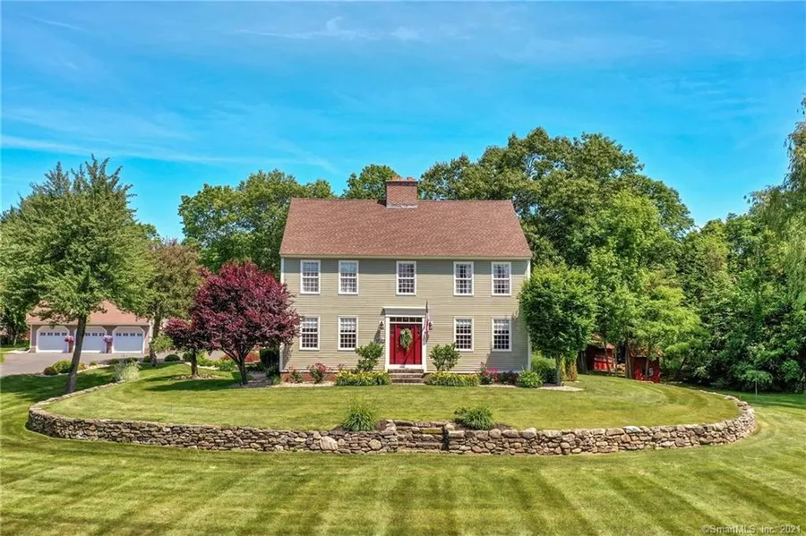 Stunning Country Estate in Rocky Hill's West End! This magnificent antique reproduction center chimney Colonial sits on just over two acres of prime real estate abutting over 90 acres of conservation land. Featuring a gated driveway, fieldstone walls, paddock, expansive rear patio with natural gas fire pit and grill, professional landscaping, and a detached garage with a 600SF office above (not included in square footage), this home is truly one-of-a-kind! The antique wide pine floors and imported windows will take your breath away. The chef's kitchen has an open concept design, custom cabinets, granite counters, a center island with marble top, exposed antique beams, barn wood accent wall, butler's pantry, and a large dining area anchored by a massive stone fireplace. Completing the first floor is the living room, dining room which has been converted into a chic pub-style entertaining space, and a bath with a clawfoot tub. The second floor features three bedrooms, a full bath, and an office or sitting room that leads to the master suite. Occupying the entire third floor, the primary suite features a breathtaking spa bath with jetted tub, walk-in shower, double vanity, and a walk-in closet. The lower level includes a home gym, a fourth full bath, and laundry. This home also includes a brand new gas furnace with a lifetime warranty, automatic Generac generator with natural gas feed, newer well components, and is truly move-in ready as it has been meticulously maintained.