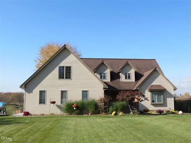 Charming Split level situated in a lovely country setting in Ray Twp on 2 acres. Property backs to Ray Community airport property and no one behind. If you are a fan of aviation...this setting is perfect! Home offers front stamped concrete patio and porch for relaxing views. The home is 3200 sq ft with upper finished bonus rm and staircase to finished 500 sq ft studio/garage that could be converted back to garage leaving 2700 sq ft. 1st flr master with 2 closets and custom stone tiled bathroom. 1st flr den. Great rm offers high ceilings and awesome views out the Andersen windows looking out over property; wood stove. Kitchen with WIC pantry with pullouts, maple cabinetry, reverse osmosis under sink, SS appliances stay. Finished basement with dual staircase, rec area, exercise rm or 5th bdrm, and lrg workroom with tiled flr. FYI-4th bdrm has no closet but attic storage. 3rd bdrm has access to upper bonus room. Dual Furnace and air but only one hooked up. GFA #1/2019. Generator ready.