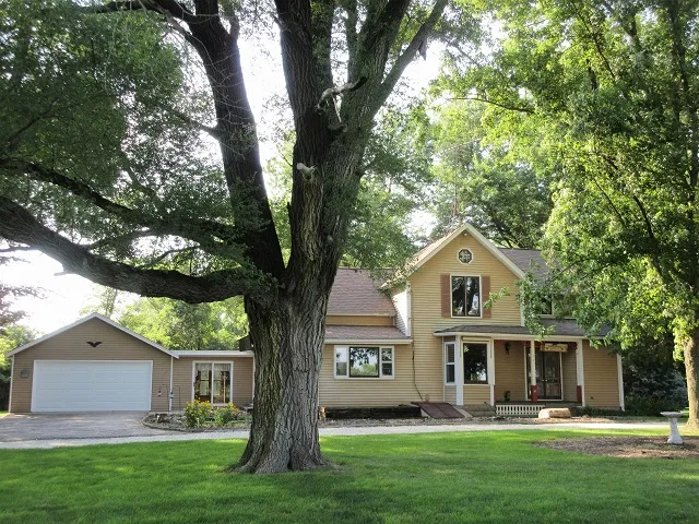 As appealing inside as it is with the curb appeal exterior! Pride of ownership radiates through out this 2 acre country parcel. Farmhouse has 4 bedrooms, 2 baths-vestibule w/stained glass window,checkered black and white tile- living room w hardwood flooring-dining w/bay area-abundant charming knotty pine kitchen cabinetry -office or 5th bedroom -large laundry/pantry on 1st floor- bath-enclosed breezeway.. 4 bedrooms and bath on 2nd story. Brand new furnace/central AC, newer hot water heater, well pressure tank,roof,2nd story windows, wood laminate flooring in bedrooms.Outbuildings in excellent condition, which include a 36 x 56 barn, plus a 12x12 and 8x10 shed (perfect potting shed, playhouse, chicken coop). Wonderful blend of the old and the new=a home with character! Beautiful mature trees provides perfect setting. Dont miss this opportunity to have your dream country home come true.