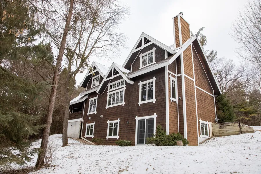 Unveil your dream home, blending efficient luxury and unparalleled character! This one-of-a-kind custom-built residence, crafted by its original owner, is inspired by the timeless elegance of Medieval Scandinavian architecture, reminiscent of the stunning Norwegian stave churches. Constructed to stand the test of time, the home features a robust 12-inch-thick concrete foundation that supports massive timber beams and Structure Insulated Panels (SIPs). The roof, installed in 2017, boasts Class 4 Malarkey Impact resistant shingles with a transferable warranty, ensuring durability and peace of mind. Step inside to marvel at the hand-carved joinery and exquisite Norwegian art by Phil Holtegaard, adding unique charm to the timber-framed structure. The efficient geothermal system, replaced in 2017, guarantees eco-friendly living, while the newly updated kitchen showcases new appliances, countertops, backsplash, and refaced cabinets. For the modern homeowner, the garage is pre-wired for an electric car charger, adding convenience and future-proofing your lifestyle. Don't miss this extraordinary opportunity to own a home that perfectly balances timeless beauty with contemporary efficiency!