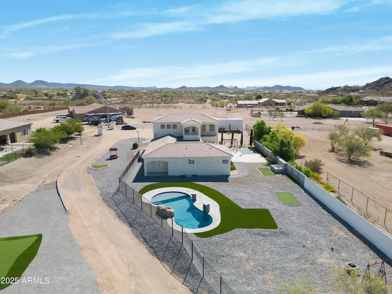 Incredible opportunity to own this stunning two-story gem with casita and RV garage on a 2.5-acre lot! Enjoy a brand-new pool with waterfall and custom heater and chiller! Stunning kitchen with not one but two islands and plenty of room for entertaining! The casita or second home comes with a full kitchen, living room, laundry, bedroom, bathroom, yard and is attached to the RV garage. Don't miss out on this home!