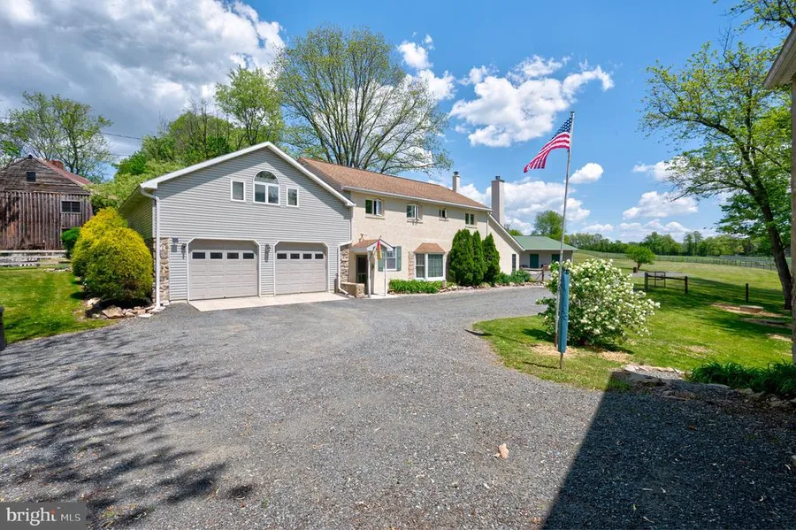 Versatile, Expansive, and Practical living is exactly what 810 Delong Road has to offer the new owners. This rustic and manageable horse property situated at the crest of Huffs Church Road provides a multigenerational opportunity within the gorgeous neighboring in-law quarters. This 35x45 multi-story Bank Barn hosts a delightful kitchen/dining room combo, open living room featuring cathedral ceilings, full bathroom, main floor bedroom with walk-in closet, walk down deck overlooking the pastures, second story loft offset from the second bedroom, as well as it's own parking area and fenced yard. The Primary Home, a modern 1950s colonial, has been expanded overtime with additions creating a comprehensive living space. The epic eat-in kitchen offers a charismatic stone wood-burning fireplace, abundant granite counter space including a center island, exposed modern black ductwork hanging within the cathedral ceilings, wide plank wood floors, and generous natural light from the wall of windows. The offset great room features tongue and groove wood paneling, wide plank floors, exposed beams, coal stove, dry bar, build-in bench seating, bay window, and a full bathroom all on the main floor. The mechanical room, laundry area, pantry, and the interior garage access are on the rear of the home's main floor. The oversized two bay garage with pointed stonework and high ceilings will comfortably accommodate four cars for the enthusiast. The main entrance mud room also features alluring stone as you transition upstairs to the second story of the home. Upstairs features three bedrooms, one full bathroom, living room, and massive office or hobby room. The primary bedroom features cathedral ceilings, interior balcony overlooking the kitchen, and a quiet deck setting off the rear of the home. The king sized office/hobby room provides ample storage, independent mechanicals, and french doors for the ability to establish a deck or balcony off the rear this impressive room. A shaded, flat rear yard off the main house creates a perfect canvas to continue to establish exterior living space. The 35x55 steel horse barn offers four stables, feed storage area stall, and massive garage area for the toys. The pasture has been updated with new solid post and woven wire fencing and oversized duel steel access gates. The upgraded (2010) septic infrastructure was designed to support the main home and bank barn in-law quarters along with water management for the property. Manageable land, practical living, versatile amenities, all beautifully designed; we look forward your visit!
