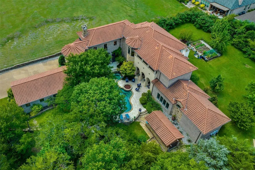 Welcome to 1712 Bison Meadow Lane, a Mediterranean masterpiece tucked away in the heart of Heath s most coveted enclave. This exquisite estate blends timeless architecture with modern sophistication, surrounded by lush, forested privacy on two serene acres. Inside, elegance meets functionality soaring beamed ceilings, herringbone hardwoods, and a grand rotunda entry create a breathtaking first impression. The gourmet kitchen is a chef s dream with premium appliances, a warming drawer, and seamless flow to multiple entertaining spaces, including a full bar with wine fridge. Enjoy morning espresso from one of two built-in Miele coffee machines one in the study and another in the primary suite. Designed for multi-generational living, the home features two primary suites, one on each floor, connected by a private elevator. Upstairs offers its own living area, kitchenette, and balcony overlooking the resort-style grounds. Outdoors, paradise awaits an ultra-private pool, spa, and cabana are nestled within a natural canopy of trees, creating an unmatched retreat. The estate s fruit orchard, active stream, and outdoor kitchen make it ideal for entertaining or peaceful relaxation. With a 4-car garage, multiple living areas, and endless custom details, this home is a rare blend of luxury and livability. Experience the ultimate in privacy, comfort, and refined Texas living minutes from shopping, dining, outdoor recreation, hospitals, schools, and golf.