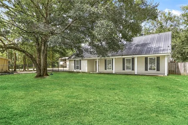 Looking for a move in ready home on multiple acres with a huge shop? This is it! 4 beds and 2 baths plus an oversized screened in back patio makes for great entertaining. Sitting on 2+ acres with a separate driveway to a large metal building/shop with 2 garage doors plus covered RV storage featuring electrical hookups! Secluded corner lot with fenced in yard & beautiful oak trees. Open floorpan with cathedral ceilings, updated flooring & neutral paint throughout. High & dry N of I-12, minutes to interstate!