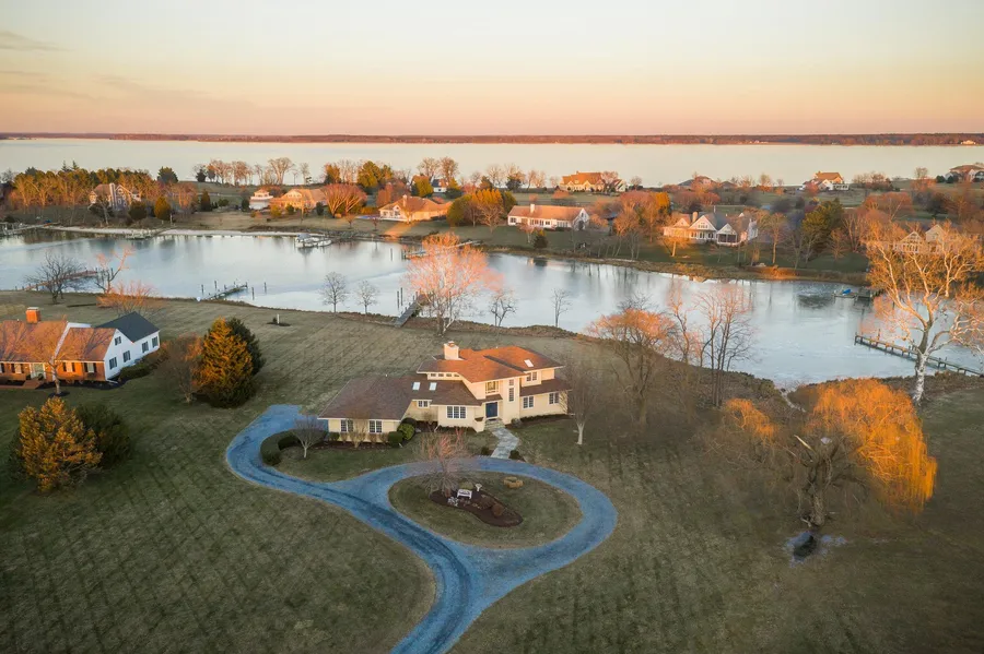 Opportunity beckons in the desirable St. Michaels community of Martingham! Perfectly sited on a 2+ acre lot this stunning home offers 3489 sq. ft. with 3 bedrooms, plus a flex space for use as an additional bedroom. Bordering Hambleton Cove and facing the award winning Pete Dye golf course, Links of Perry Cabin, on the front, the property is the perfect combination of casual coastal and contemporary living. Upon entering the impressive 2-story foyer with a fabulous chandelier and custom stain glass window, you will be immediately delighted with an abundance of windows framing breathtaking water views. The vaulted ceiling great room is a fabulous universal space with a substantial see-through gas fireplace, 85 mounted flat screen tv and French doors leading to the waterside deck. The heart of the home will be the sunlit gourmet kitchen with a center island, open to a spacious breakfast area with a fireplace and beautiful water views. Host your special occasions in the elegant dining room, only steps from the kitchen. Just off the breakfast area is access to the waterside deck and a screened porch, providing the ultimate venue for outdoor enjoyment. Around the corner is a pantry closet, powder room and laundry room with easy access to the 2-car attached garage. Head to a cozy den with French doors; the perfect getaway or flex room for guests. Two main level bedrooms and a hall bathroom, all offer water views. At the end of the day, retreat to the upper level primary bedroom suite with its own private balcony overlooking the water. An expansive primary bathroom with a double vanity, walk-in shower, interior linen closet, and skylight is perfect. The large walk-in closet rounds out the suite. For those working from home, there is a very private office on the upper level with a built-in desk. Stunning views are afforded from the upper landing overlooking the great room and foyer. Outdoor living is ultimate here. Enjoy the large waterside deck, a private dock for a power boat, take a float in the kayak, or play a round of golf. The community of Martingham is located on the broad Miles River and the Chesapeake Bay, just over a mile from historic St. Michaels where you will find great restaurants, shops, the Chesapeake Maritime Museum and more. Living is easy on the Eastern Shore!