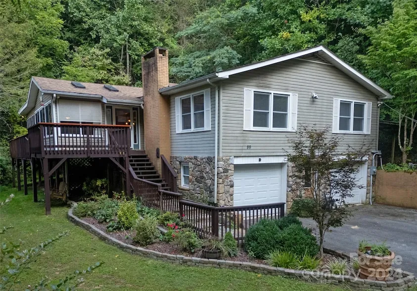 Two separate primary suites! Two kitchens! Four bedrooms! Three full baths and a convenient half bath! This house is nestled in the trees on the side of a mountain looking down on your pond and gazebo, and out over the Little River Valley to the mountains beyond! Double car garage with only a slight sloped driveway and entrance lane up to it! Huge great room with a beautiful field stone gas log fireplace! Sunroom has walls of windows. Both with vaulted ceilings! Main floor kitchen has a center island, breakfast bar, and full complement of appliances! Two washer/dryer sets, one up/one down. Wrap around front and side decks give lots of outside pleasure! Literally less than a half mile to Dupont Forest and Cascade Lake. Hiking and cycling trails in the forest, as well waterfalls and rivers to explore.! Easy access to both Brevard, Hendersonville, and the Asheville Airport. Work bench and lots of garage shelving! Generator and extra large propane tank on site! Gotta see! This is fabulous!