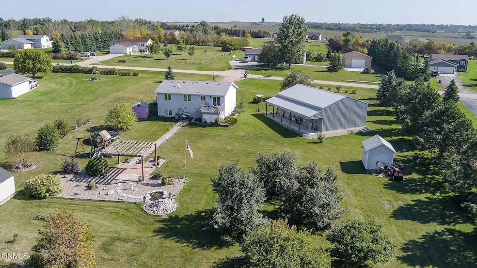 Welcome to Crescent Ridge Subdivision, zoned for horses and offering 2.08 acres of country living. Featuring 2,160 square feet, this split-entry home offers three bedrooms on the main level along with many notable upgrades! Upstairs, you'll find a bright living room with real hardwood floors that flows into the kitchen and dining area. The kitchen is well-thought with newer black stainless steel appliances including a dishwasher, refrigerator, convection oven/air fryer range, and microwave hood paired with quartz countertops, newer flooring, and a cast iron/porcelain sink. Just off the dining area, a 10x10 deck overlooks the backyard. The upper level also features three bedrooms, a full bathroom with a linen closet, plus an additional hallway closet for extra storage. Downstairs, a spacious family room offers plenty of room to spread out. This level includes another full bathroom with laundry and two bedrooms, one with a walk-in closet. You'll also find a mechanical/furnace room and storage under the stairs. Outside, the property shines with space and extras. A 30x45 pole barn shop features a floor drain for a future small holding tank, workbench, 10x10 garage door, and 12' ceiling. Additional storage includes a 10x10 vinyl-sided shed with 8' ceiling, an 8x16 plastic shed with a wood foundation, and an 8x8 shed with wood exterior. The yard is filled with mature trees and plantings three apple trees, two plum trees, rhubarb, chokecherry trees, and more. Spend evenings under the 16x16 pergola or enjoying the tranquil pond. This home runs on natural gas and is ready to offer both comfort and country living with room to grow.