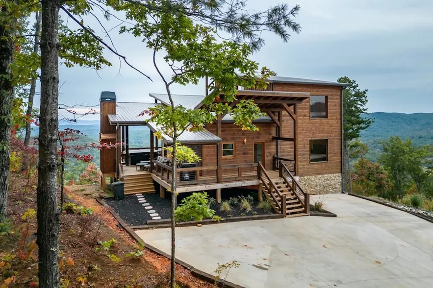 Modern Mountain Living : Welcome to Big Sky Lodge! With some of the best views in the area, this stunning contemporary rustic chalet perches above over ten ranges of layered mountain views in a highly sought-after gated community in the heart of Cashes Valley. The home is complete with three levels of indoor and outdoor living. On the main, find a large gourmet kitchen, wall of glass and sliding glass doors, towering stone fireplace, large living opening up to a gorgeous wraparound deck, party porch with fireplace and hot tub, and stunning sunset views. Upstairs is complete with a gaming loft, bedroom suite, and large balcony. The terrace level is finished with a large den, fireplace, and additional sleeping suites. Sold FULLY TURN KEY, including all furniture, electronics, wirings, mirrors, fixtures, and appliances. This home boasts a custom interior design that perfectly complements its breathtaking surroundings. With the potential of being a stunning full-time residence, a luxurious second home, or one of the top rental destinations in the mountains, it's sure to leave you speechless.