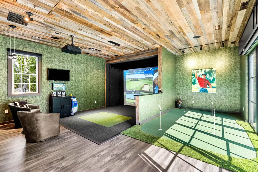 Welcome to this stunning Brick Colonial nestled in one of Bedford's premier neighborhoods, Dunlap Place. This beautifully maintained & modernized 4-bed 3.5-bath home seamlessly blends elegance with functionality. Upon entering, the grand foyer greets you with soaring ceilings & gleaming hardwood floors that flow throughout the home. The heart of the residence, a gourmet kitchen, features quartz countertops, Thermador stainless steel appliances, custom cabinetry with open shelving, wine fridge & a large center island-ideal for casual dining. The formal dining room, family room with stacked stone gas fireplace & a sitting room offer a range of inviting living spaces. A custom addition enhances the home, boasting a spectacular recreational space with a golf simulator and putting green. The basement is a haven for at-home recreation, featuring a movie space, bar with fridge, pool table, gym ...