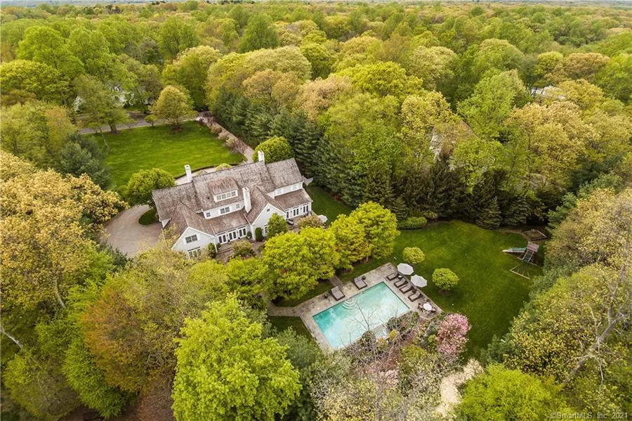 Classic elegance on 2+ estate acres. Exquisite details and finishes with soaring ceilings, fine millwork and total privacy. A rare opportunity in Fairfield Counties premier gated community The Ridge. This beautiful estate situated prominently on a desirable tree lined street, lies a grand five-bedroom, eight-bathroom residence with expansive grounds, & gorgeous pool. The elegant floor plan is ideal for a sophisticated but comfortable lifestyle. The dramatic foyer flows to the formal living room, large family room with dramatic ceiling and fireplace, formal dining room, gourmet kitchen, & wood paneled library with beautiful detailing. The opulent master suite features dual bathrooms with walk-in closets & a separate sitting area. Entertain in the lower level movie theater, studio/dance room, exercise room, large shop for a woodworker or better enjoy the backyard by the English gardens ove...
