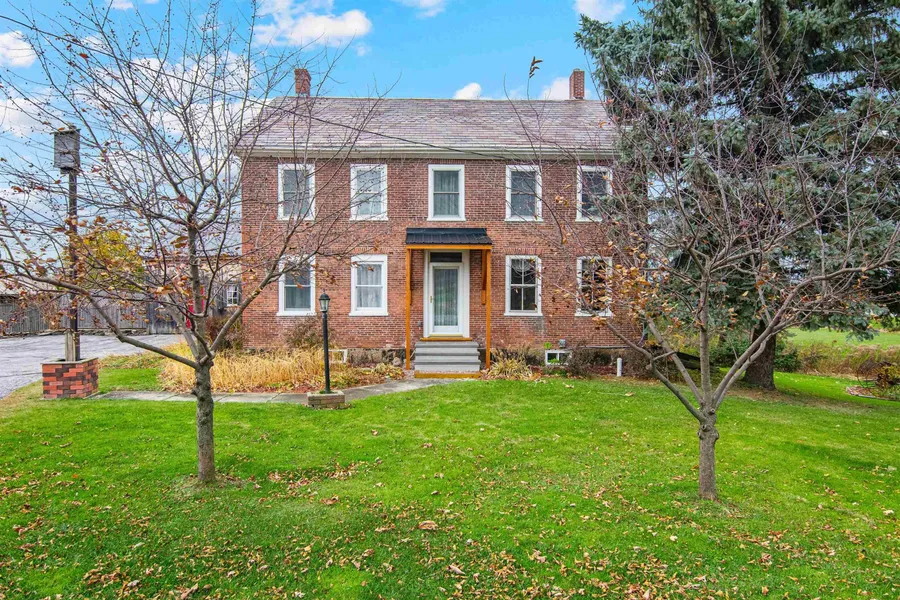Welcome to this charming 1802 historic vintage home! Nestled on a scenic l lot, this property offers a delightful blend of rustic elegance and modern convenience. This home exudes timeless character, boasting original architectural details and carefully preserved features that give it an authentic charm. Set on two level acres with panoramic views, the property provides ample space for relaxation, outdoor activities. The barn attached to the main house has been beautifully restored, providing a flexible bonus space with endless possibilities. Originally built as a horse barn, this structure now serves as a spacious two-car garage with an attached workshop. Perfect for storing outdoor equipment, maintaining hobbies, or keeping vehicles and toys secure First floor you will find a modern kitchen, featuring granite countertops, cherry cabinets, and a double oven, perfectly balancing style and functionality. Enjoy a formal dining space along with a cozy bonus room complete with a fireplace, a great spot for reading, relaxing, or hosting friends. The living room offers a pellet stove, ensuring warmth and comfort on cold Vermont nights, adding both charm and efficiency to your home. Located adjacent to an updated bathroom, the first-floor laundry room brings added convenience to daily routines. The 2nd Floor houses 4 beds,1 full bath. Outside vibrant perennials, mature fruit trees, and vegetable gardens. Close to all amenities and I-89. OPEN HOUSE 11/9 11-1pm