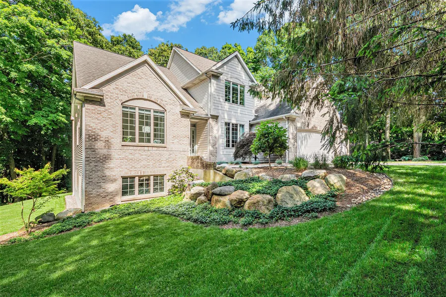 Welcome to your dream home on a serene, wooded 2-acre lot within a charming 8-home cul-de-sac development. This custom-built former parade home offers luxury and tranquility with a perfect blend of privacy and convenience. As you step inside, you're greeted by a spacious interior that is meticulously maintained. The main floor boasts a primary ensuite featuring a relaxing whirlpool tub and an additional bedroom or office space. Entertain guests in the dining room or unwind in the inviting living room, complete with a cozy fireplace and cathedral ceilings that create an airy ambiance. The heart of the home is the stunning kitchen adorned with solid surfaces, hardwood floors, a convenient desk, an ample eating area, a laundry room, and a convenient half bath. Step outside through the main floor sliders and find yourself in nature's beauty. Your private wooded paradise awaits, offering opportunities to savor the sights and sounds of wildlife, enjoy the shade of mature trees, or gather around the fire pit for cozy evenings under the stars. Venture upstairs to discover three additional bedrooms and a full bath, providing ample space for guests. The walk-out lower level is an entertainer's delight, featuring a spacious family room perfect for gatherings, with another bedroom and an additional room ideal for a workout space or home office. A full bath and plenty of storage complete this versatile level. There is no need to worry about power outages, this home has a generator for peace of mind. Recent upgrades include a new furnace and air conditioning in 2021. Don't miss the opportunity to make this exceptional property your own with luxury living and nature's beauty. Schedule your showing today and prepare to be enchanted!