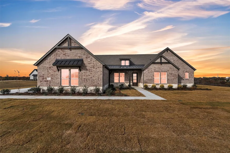 Estimated November 2025 completion! Ask us about our Trade In Trade Up program, we can buy your home! Discover an exceptional lifestyle in the Mockingbird a masterpiece of modern living by our team at Riverside Homebuilders. This sprawling single-story sanctuary spans 3,104 square feet and offers 4 bedrooms and 3 bathrooms, perfectly curated for a life of luxury and comfort. As you enter through the charming covered porch, the foyer beckons you inside, setting the stage for the grandeur that lies within. To the left, a versatile flex room stands ready to evolve into your personalized haven, whether it be a home office, gym or creative space. To the right, an elegant dining room awaits, ready to host cherished moments with loved ones. Continue through to the heart of the home, where the main living area unfolds a vast family room with a cozy fireplace, an inviting nook and a chef-inspired kitchen boasting an elongated island, ideal for culinary adventures and entertaining. On the left side of the home, discover the secluded owner's suite, offering unparalleled privacy and tranquility. Enjoy the luxury of a spacious walk-in closet and a serene bathroom, creating an oasis of relaxation. On the opposite side, two traditional bedrooms await, each complete with its own walk-in closet, accompanied by a shared bathroom perfect for siblings or guests. Functionality reigns supreme with the laundry and mudroom conveniently situated just off the garage entrance. Finally, step outside to the expansive covered patio, seamlessly blending indoor and outdoor living and promising endless opportunities for relaxation and recreation. In the Mockingbird, luxury meets functionality, offering an unparalleled living experience for homeowners in DFW.
