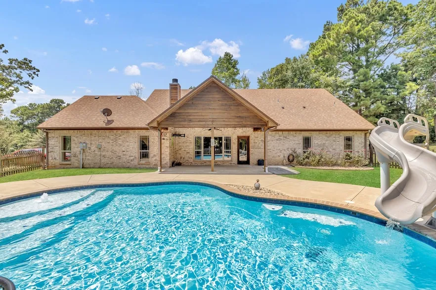 Welcome to this charming 3-bedroom, 2-bath home offering 1,950 sq. ft. of comfortable living in desirable East Shores Estates at beautiful Lake Tyler East. Nestled on just over 2 acres in a quiet neighborhood perfect for walking, riding, or biking, this property provides peace, privacy, and even a peek-a-boo water view. Inside, you ll love the open-concept layout with a split-bedroom design, creating the perfect balance of shared and private spaces. The spacious living area flows seamlessly into the kitchen and dining spaces ideal for everyday living and hosting gatherings. Step outside to a phenomenal entertaining space! The expansive back patio overlooks a sparkling pool, making it the perfect place to relax or entertain friends and family. Whether you re enjoying your morning coffee with a view or hosting a summer pool party, this home has it all. Experience lake-area living at its fi...