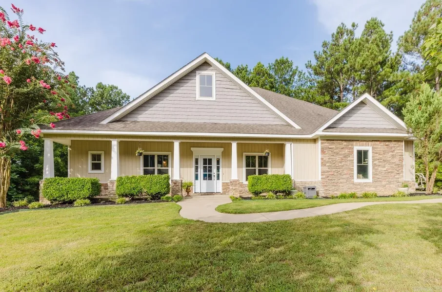 Welcome to this stunning single-level retreat in Stonehill Estates! This serene and beautiful home is nestled on 2.11 acres and offers four spacious bedrooms, three full bathrooms, and 2,589 square feet of living space. This custom home offers the perfect blend of comfort and elegance with open floor plan, granite countertops, stainless appliances, built-ins, vaulted tray ceilings, and a cozy wood-burning fireplace. Primary suite features a huge walk-in closet, custom walk-in shower, and jacuzzi tub. Flex room off of laundry room could easily lend itself as a craft room or home office. The convenience of a three-car attached garage and a separate 30x40 detached garage are perfect for hobbyists, car/boat enthusiasts, or additional storage. Cool off in the breathtaking oversized in-ground saltwater pool, and relax under the covered patio while grilling and enjoying the tranquility of your wooded backdrop. Outdoorsman will enjoy their very own range for sighting in their bow. Located in a quiet cul-de-sac to offer a peaceful and private setting. New HVAC system installed 2024! Bryant schools. NO HOA! Schedule a showing today and make this incredible property your own!