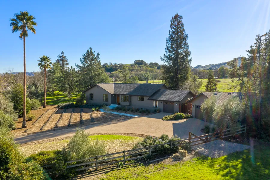This 3 bedroom / 2 bathroom, single level, modern, Ranch-style home is located on a quiet country lane in the desirable Carriger Road area of Sonoma Valley. Tastefully remodeled with incredible attention to detail and the highest quality finishes. Interior features include hardwood floors, open beam ceilings, remodeled kitchen and baths, fireplace, and great room. French doors from great room and master bedroom open to a large and private back yard with sweeping views of the Western hills. Flagstone patios, Ipe deck, BBQ, lawn, and mature landscaping creates a quiet and relaxing spot to enjoy nature. Both an attached garage and a detached garage for people with hobbies or extra cars. Beautiful views in all directions. Country living in a premium location near all conveniences.