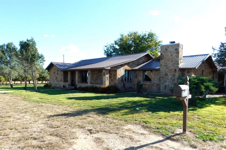 Stately stone facade country home....4 bedrooms, 3 1/2 baths, 2 living areas, basement, office, new roof, new heating and air, 2 new water heaters, new garage door, new wrought iron fencing along yard perimeter and a 400 sq. ft barn. This home has tons of built in storage cabinetry, all new flooring throughout, 4th bedroom has an en suite half bath. This home is currently priced with 2.122 acres.