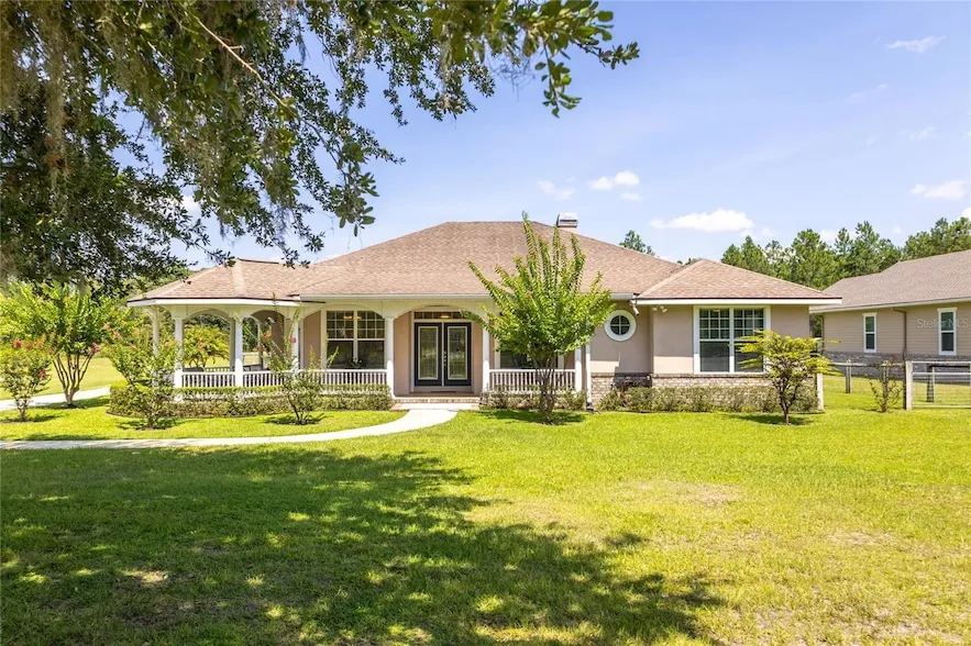 Under contract-accepting backup offers. Experience Florida dream living in this one of a kind lakefront property. 2024 New HVAC and new fiber optic internet cables being installed in the community are just a few more of the amazing perks of this property. It is nestled on 2.12 acres of pristine land. This picturesque estate boasts a serene and peaceful atmosphere that offers the ultimate escape from the hustle and bustle of daily life. In this 3 bedroom, 3 bath custom built home you will find an office or flex space with beautiful open spaces and modern amenities to entertain or just relax. Large windows bathe the rooms in natural light while offering panoramic views of the lake and its surroundings. The front porch gazebo and serene back porch present a front row seat to nature. Enjoy the private pier and dock that allow convenient water access to enjoy your own water recreational activities. It is tucked away just 30 minutes from the University of Florida, Shands, North Florida Regional Medical Center and one hour away from Jacksonville and an 1.5 hours away from St. Augustine. There is so much more to uncover with the amenities of this home. Make an appointment today and get ready to explore this special home for yourself!
