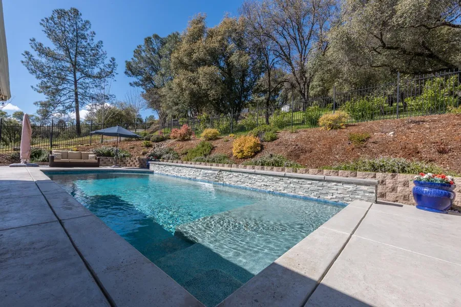 Fabulous home with a resort backyard, a salt water swimming pool and an owned solar system! Remodeled, one story with lodge style accents, stack stone living room fireplace, 7.5' timber kitchen island, French doors to the patio, and beautifully landscaped front and back yards. Serene hilltop setting is well off the road with a circular driveway and a spot for a large RV (convenient to the house for packing). This is the perfect place for active living or a weekend getaway. The indoor/outdoor footprint is located INSIDE the larger parcel providing a visual and audible buffer (without the care of a large parcel). PG&E bill for the entire year was $406.00! Wow! Enjoy a fun vacation vibe, loads of room for outdoor entertaining, lovely local views, with shops and services located under ten minutes away! No CC&R's or HOA! Live the good life in desirable Texas Hill Estates and wonderful Placerv...