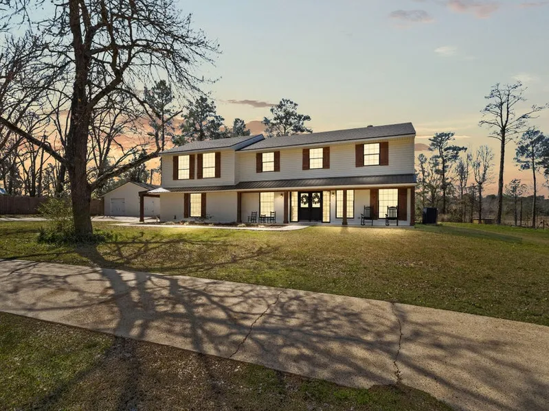 The gourmet kitchen features QUARTZ countertops, stainless steel appliances, a flat, electric cooktop, custom cabinetry, island, and TWO walk-in pantries. The owners suite, located on the main level, features beautiful windows with farmhouse trim and an en-suite bathroom with dual vanities, a soaking claw-foot tub, a separate shower, and a walk-in closet. Also, in the walk-in closet is a gun safe closet with a coded door entry. Upstairs, FIVE generously sized bedrooms with updated flooring and THREE full bathrooms provide plenty of space for family or guests. A MASSIVE additional space on the second level offers versatility: a finished flex space, ideal for a home office, playroom, or den; Outside, enjoy the fresh landscaping, a large backyard perfect for gathering, and a 2 car garage. And as an extra perk, this home falls in TWO school districts: Anacoco and Leesville. The home is conveniently located a hop and skip from Lake Vernon and a short drive to the heart of Leesville and Ft. Johnson. Schedule your showing today and experience this exceptional home for yourself!