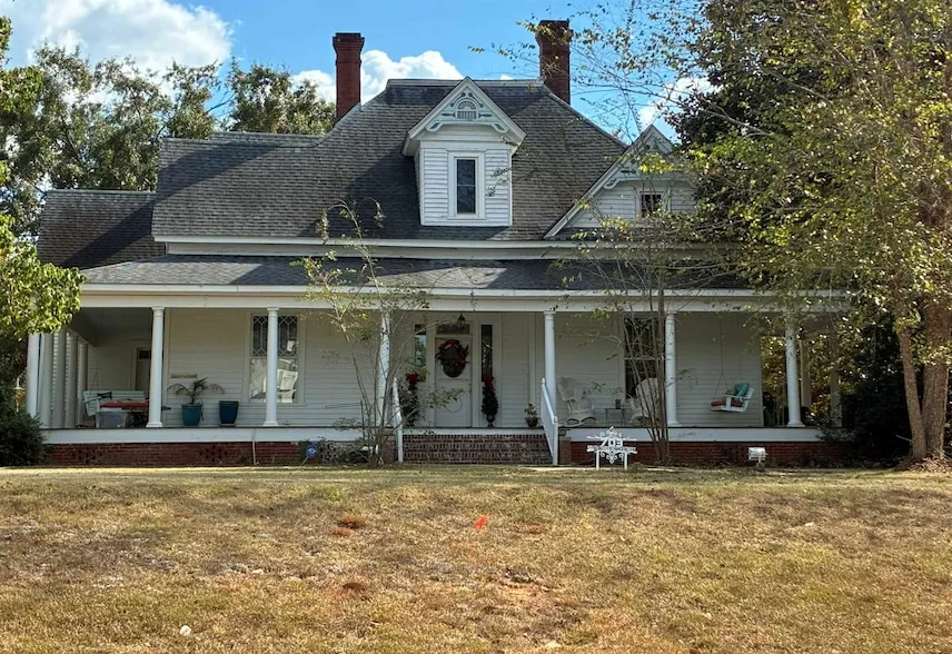 Historic vintage features throughout this picturesque main street turn-of-the century Victorian style home w/ nostalgic charm throughout. Wrap-around porch (newer wood) w/ fiberglass columns. Grand front entrance, 14 ft. ceilings, 2 sets of pocket doors, transoms, 7 manteled fireplaces, parlor, family rm., dining rm., beaded ceiling wainscotting, eat-in kitchen, walk-in pantry, updated en-suite main bath, oak floors. Craftsman stairway leads to unfinished upstairs with mini-split ac. New crawl-space duct work. Some storm windows. Re-wired in 2010. ADT wired. Invisible fence wired for pets. Located on 2-acre parcel (corner lot) filled with azaleas, camellias, holly, pines, & magnolia. Spacious front yard for children to romp & roll. Close to town, churches, shopping, & hospital. AIR BNB potential. Most furnishings left in house included in sale.