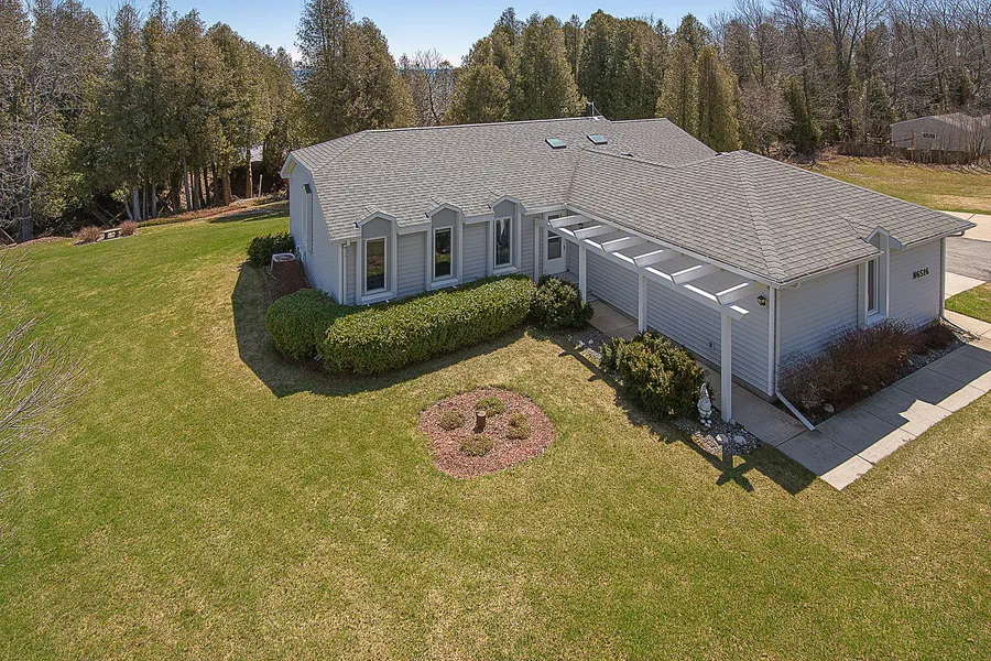 Rare and remarkable. 285 feet of Lake Michigan Shoreline that offers everything: walking access to the shore, elevated waterview benched observation area, a creek running through it, and a boardwalk with creek footbridge which travels through the ravine between the home and the shore. You can hear the creek as it makes its way to the lake. The home offers open concept living with cathedral ceilings and skylights resulting in natural light flooding the living area. Amazing kitchen area with counter eating area. Additional living space on the lower level; main floor master and exceptional sunrises. Bald eagles and other wildlife can be observed on a regular basis. This is a must see. TEXT 155427 to 35620 for more information.