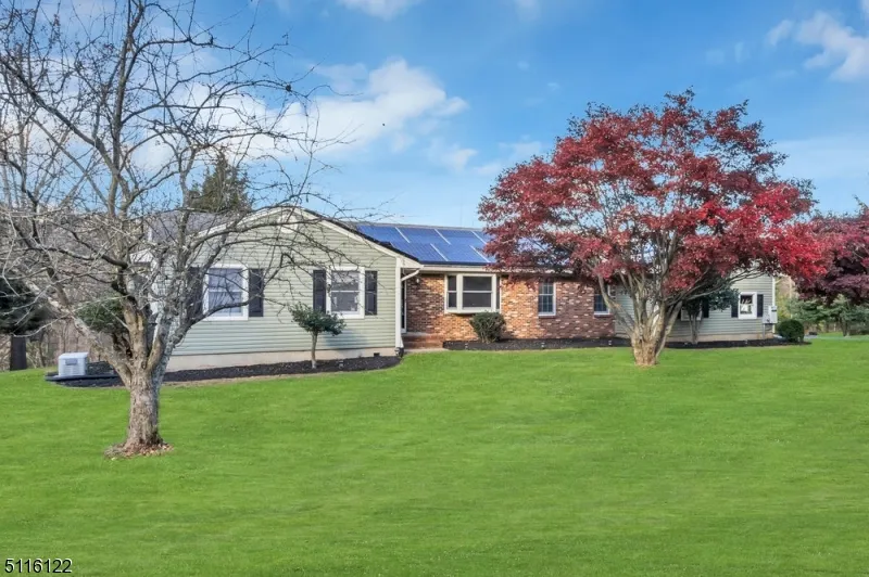 Spacious custom-built ranch in desirable Neshanic Riverview Estates! This one-entrance neighborhood sits between the Sourland Mountains and the South Branch of the Raritan River. Stunning scenery and plenty of opportunities for outdoor activities. This south-facing home has been lovingly maintained and updated and sits on a private 2+ acre lot landscaped with mature trees at the end of a cul-de-sac.Main floor offers 3 BR, 2.5 BA, LR, DR, Family Room with wood-burning fireplace, and renovated Kitchen with SS appliances, quartz countertops, and cherry cabinets with lighting. Enjoy the outdoor views from the screened-in porch or relax on the oversized deck. This peaceful backyard offers an 18x36 in-ground pool. Ideal backyard layout for entertaining or vacationing at home! The finished walk-out basement provides approx. 1,000 sqft of additional living space - perfect for In-Law Suite and/or home office/gym area. Space includes two private entrances, a full Bathroom, and a Kitchen. Expanded 2-car garage, custom shed with loft can easily accommodate storage and workspace. Enjoy cost savings with the fully owned solar panel system and Nest smart thermostat. You will also earn additional income through selling energy credits generated by solar panels! Whole-house Generac generator allows you to live and work uninterrupted by any power outages.