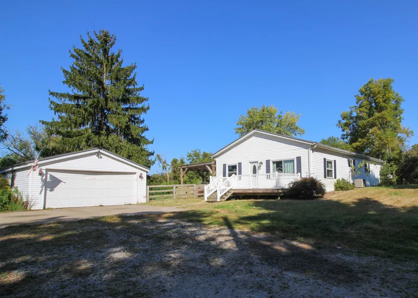 YOUR COUNTRY ESCAPE AWAITS! This renovated 3BR/2BA ranch home sits on 2.16 rural acres, offering space and modern amenities. - **Open floor plan** perfect for entertaining - **Renovated kitchen** with granite countertops, pantry, and stainless steel appliances - **Primary bedroom en-suite** with a **jetted tub** - Renovated full bath for added comfort - **Lower level** with egress window for future living space or storage STEP OUTSIDE to ENJOY your outdoor space featuring: - **In-ground pool** for summer fun - **Covered patio** PERFECT for an outdoor kitchen and year-round entertaining - **Detached two-car garage** - Spacious **24 x 30 heated pole barn** with electric and concrete floor - ideal for hobbies, projects, or extra storage. Schedule Your Showing Today! ALL INFORMA ALL INFORMATION INCLUDING ANY MEASUREMENTS TO BE VERIFIED BY BUYER(S). SELLER IS SELLING AS IS, WHERE IS. PER SELLER: POOL WAS IN WORKING CONDITION BUT NOT OPENED 2024 SEASON. GARAGE DOOR NOT WORKING.