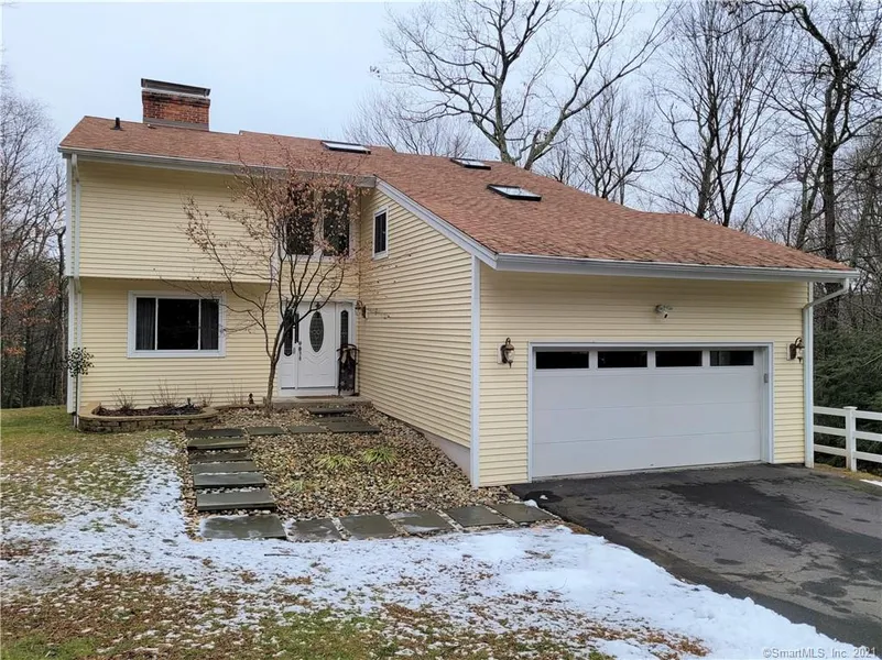 WOW! Beautiful contemporary home on cul-de-sac; minutes away from Farmington River and Rails to Trails for recreation! This 3-4 Bedroom Contemporary home is so spacious and tastefully decorated. On the main level of the home, you will find a GORGEOUS, light filled living room with vaulted ceilings, gas fireplace, hardwood flooring and gorgeous windows to let the sun pour in! The living room is open into the dining area; this space is great for entertaining. Kitchen features corian countertops, breakfast bar for seating and a slider to the deck to view the peaceful and private backyard. First level also a study room with double sided fireplace and french doors; this could be a great home office area! There is also a half bath located on the main level. The upper level of the home has a unique Master Bedroom with a huge dressing room area and full bath. Two additional spacious bedrooms and and additional full bath are also located on the upper level. The FULLY finished basement (with walk out to backyard) provides and additional 1068SF of living space! This area includes a family room, full bath and additional room, which could be used as a guest bedroom or additional office area. Set on 2.16 acres, this house has so very much to offer! Such a peaceful location!