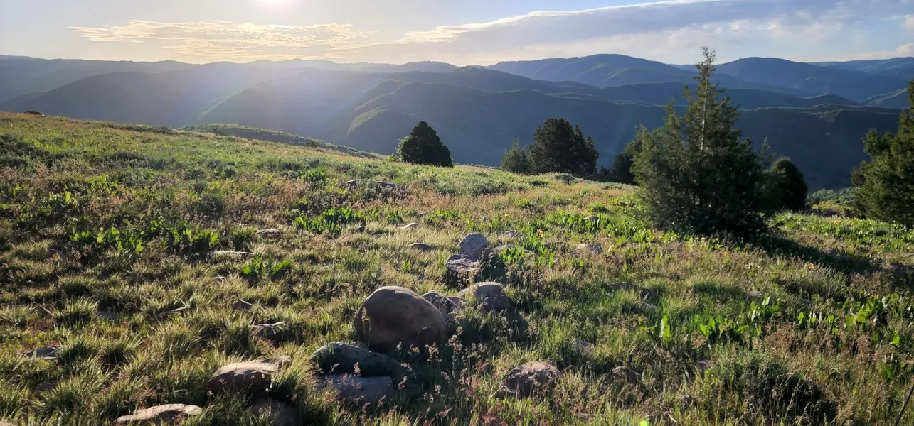 Beautiful & peaceful 2.16 Acre recreational mountain property, just an 11 mile drive East from Ogden along the scenic Ogden River, to Huntsville Town, Utah. Then another 11 miles up in the mountains off Hwy 39. This lot is covered with wildflowers in the summer, and has perhaps the finest views of any lot in the area, with distant snow-covered peaks, red-rock cliffs, and a lush valley below. It is at an elevation of nearly 7000 ft. and therefore is often cool and breezy in the summer, while heat bakes the valleys below. There are numerous mature juniper trees for shade and privacy. Dark, starry, night skies allow viewing of the Milky Way on clear nights. Abundant wildlife may be seen and heard, as deer often wander through at dawn and dusk, song birds, hawks, and migrating cranes are regulars, as are wild turkeys. The property is very close to the scenic Causey Reservoir for fishing, paddling and hiking. Nearby Ogden Valley is home to 3 ski resorts, recreational boating and fishing, with abundant trails for hiking, mountain biking, and running, There are many miles of primitive roads to explore to the East, over Monte Cristo Pass. The nearby towns of Huntsville and Eden have restaurants, music concerts, as well as grocery stores and service stations. The road's last half mile to the lot is a little rough, steep in places, and best navigated with a 4WD or AWD.. It is not maintained in the winter, so the lot is seasonal or would require a snowmobile. The owners have hand-excavated improvements to allow for camping. 2 camp spots - one larger and 1 small, have been cleared and leveled. A fire pit has been dug and lined with rock, and a primitive walkway cleared to a small leveled spot for a shower tent. There are numerous slightly sloped spots that would allow building an off-grid cabin. Need a well & septic to have a cabin. 450 sq ft minimum build. NO HOA. Weber county guidelines apply. Sign on property. See directions in pictures.