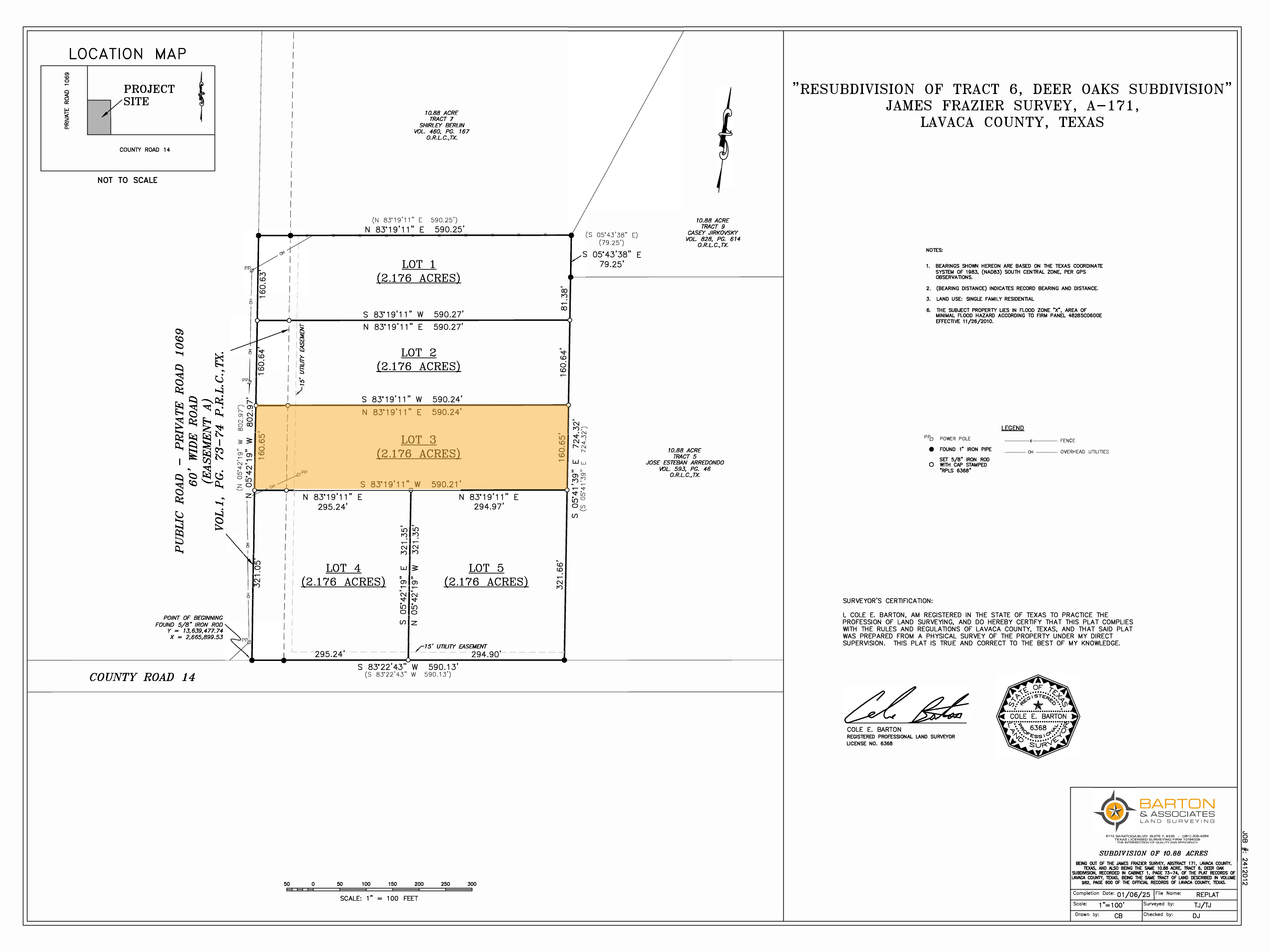 Legal Description: Lot 3 of the Resubdivision of Tract 6, Deer Oaks Subdivision James Frazier Survey, A-171, Lavaca County, Texas