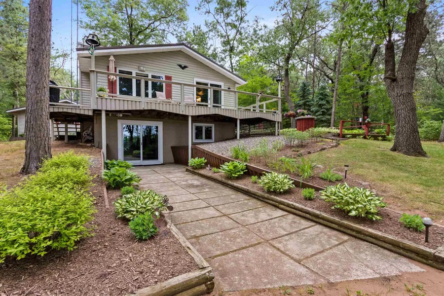 Relax and enjoy the northwoods on Deer Spring Lake! Immaculate 2 bedroom modular ranch with many upgrades, open concept living, patio door to large wrap-around deck, 2 1/2 baths, lower level family room with fireplace and walk-out to patio. Potential for 3rd bedroom. Lower bedroom has painted block walls. Ample storage, large 3 stall garage, extra 12x16 insulated workshop, beautifully landscaped yard. Home has been pre-inspected.