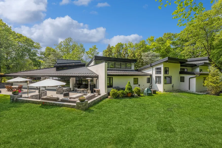 Renovated contemporary Ranch boasting 6 bedrooms, 5.5 baths & 8,500 square ft of luxury! Enter through enchanting bluestone & cedar ceiling foyer w/sunlight beams off oak hardwood floors. Living & great rooms feature fireplaces. Enjoy beautiful dining rm & stunning new kitchen w/center island & top-tier appliances from Miele, Subzero & Dacor. Entertain in gorgeous in-home theatre w/soundproof walls. Home boasts true primary suite w/spa-like bath & shower w/limestone, dressing area, enviable WICs & cedar ceilings that are also featured in additional bedrooms. Newly renovated laundry area & bathrooms are equally exquisite. Large finished basement w/temp controlled wine cellar. Lush property resides on a gated 2.25 acres; an oasis w/cabana style pool surrounded by bluestone, fabulous patio, grill, icebox, sink, natural gas heaters & new HiFi/Wifi systems. Home also has 5-car garage, EV outl...