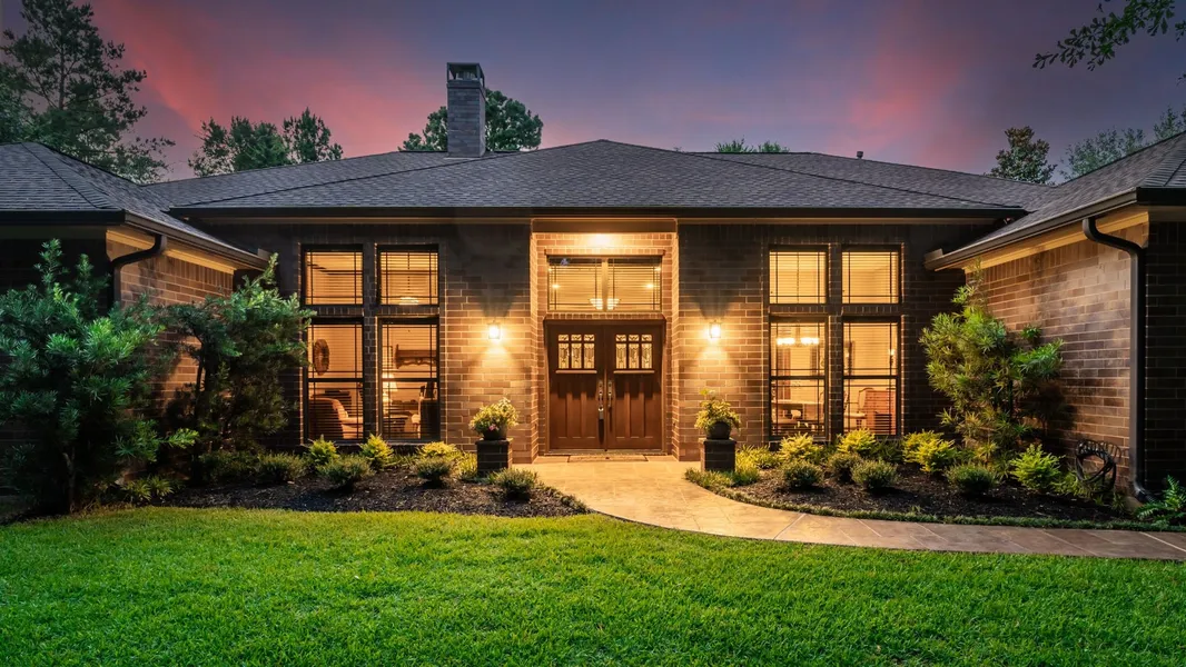 A craftsman inspired home in a tranquil 2+ acre secluded setting. From the Frank Lloyd Wright- inspired entrance gate at the beginning of a shaded driveway, to the mahogany craftsman entry doors. This stunning home features an extensive, custom designed red oak cabinets and beautiful woodwork though out home. Breathtaking view as you walk through the front door into the family room with its massive, floor to ceiling Isokern masonry gas log fireplace. Wall of windows overlooking large covered patio perfect for entertaining, and freshly landscaped private backyard with red oaks, white oaks, and magnolias. You will enjoy the private walled courtyard that is easily accessed from primary bedroom and guest bedroom. Perfect 40x50 Mueller Building,This building was used as a woodworking shop, but could easily be re-purposed for any imaginable use. The building features a 14 foot roll-up door at ...