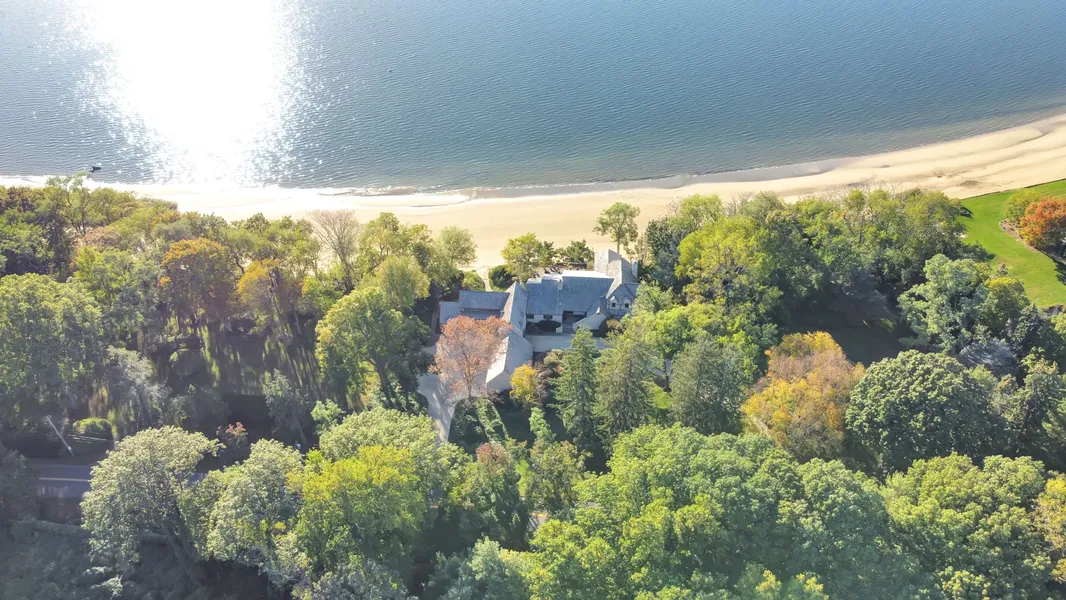 Stunning waterfront estate set on 4 acres with private beach. Enjoy west facing views to bask in the glorious sunsets all year long. Large primary suite with two bathrooms and dressing room on second floor overlooking the water. First floor offers another primary bedroom suite, office, living and dining room, sunroom with expansive water views, Eat In Kitchen. Separate wing with 3 bedrooms and bath. 3 car garage and outbuilding for storage. Generous patio with unobstructed views for year round entertaining and relaxing.