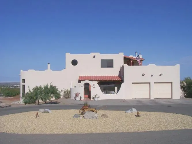 This huge 2 story adobe style home is located in a gated community (privacy!); minutes from downtown Alamogordo. This home is made of steel and adobe and has SO much to offer! It has the master suite upstairs which includes a large master bathroom, walk-in closet sky lights and you can walk out to your private balcony which also has a hot-tub & shower to rinse off before going back into your bedroom - the upstairs also has another bedroom as well as an office. There are 2 bedrooms on the main floor which are connected by a full jack & jill bathroom and each bedroom has a walk-in closet. The main floor has the formal dining room & laundry room with a 3/4 bath included. The 2-car garage has everything including an oil-changing pit in the floor but covered so you can use it everyday as well. Downstairs has a huge living room with corner fireplace & eat-in kitchen - both have beautiful, large vegas in the ceiling. You walk out of the living room into your oasis which includes a patio with bar area and running-water fountain. You'll be amazed at the 360 degree views of the mountains and the entire Tularosa Basin - this is a MUST SEE home!
