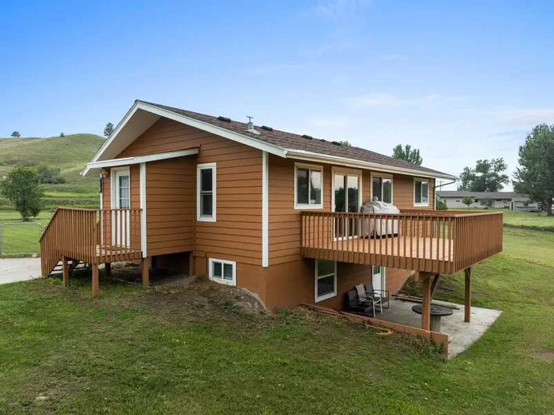 Country living, just outside of Minot! Great home in beautiful Trestle Valley, with over 2 acres! Main level has nice size windows, not only gives you great views, also enjoy the natural light coming in! There is a large deck off the kitchen/eat-in dining area, gives you room for grilling and entertaining. Nice size living room and bathroom, the primary bedroom, with a 3/4 bath has a beautiful custom shower! There is one other bedroom on the main level. Downstairs has an egress bedroom, and another bedroom that isn't compliant. Theres a large family room that goes out to a patio, another full bathroom, laundry area, and mechanical room. Outside has a large fenced in area, plenty of room for a garden, enjoy the privacy, sunrises, sunsets, and wildlife!