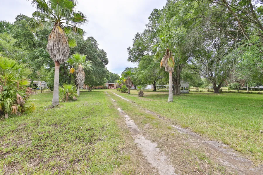 Fully fenced 2.21 acres with no HOA or CDD fees and limitless possibilities awaits new owners in rapidly growing Wimauma! 2 bedroom, 2 bath stucco-sided mobile home with attached 30 X 18 ft. multi-purpose screened room provides ample indoor and outdoor living space. The kitchen has a propane cooktop and wall oven, an electric vent hood, a microwave, and adjacent washer/dryer hookups. The dining room has a built-in china cabinet with glass doors and display shelves for treasures. The property is divided by 3 areas of fencing with large gates for access and security. Gazebo in the front yard is wired for lights. Back yard has deep pond with a fountain & surrounded by cypress and oak trees. Updates include HVAC and Well Pump in 2020, Electrical Panel and Hot Water Heater in 2021, Breaker Box in screened "Outdoor Kitchen" and Pond Pump in 2022, all offering peace of mind and added value to the property. The most notable feature of this acreage is the versatile and huge "Covered Pavilion" built in 2022 for RV living and Boat Storage with Septic Hook-Up, Water and Electricity! The 2 large storage containers, both 40 ft. long adjacent to Pavilion were envisioned to be a future "tiny home" and workshop for home based projects and activities. Additional out buildings offer more covered storage for the well and water softener and room for lawn mowers and other equipment. Property is USDA eligible and in a "no flood insurance needed" zone!