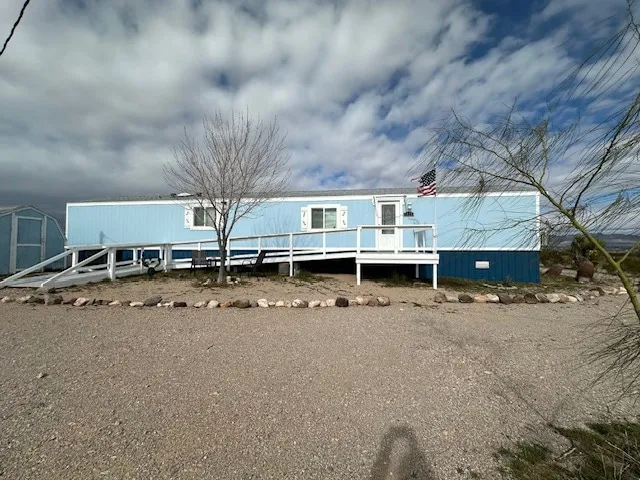 Situated on the westerly side of Golden Valley, nestled against the Black Mountains. Short distance off paved Egar Road. Recent updates include kitchen cabinets, laminate flooring through out, windows, doors, metal skirting and newer HVAC. Mini splits added in each bedroom to add a bit more energy efficiency! Hauled water area.