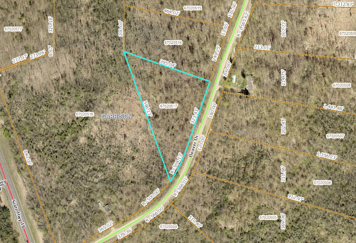 Coordinates: Nw corner: 46.3257, -93.8389 NE corner: 46.3254, -93.8376 (Road) SE corner: 46.3243, -93.8382 (Road)
