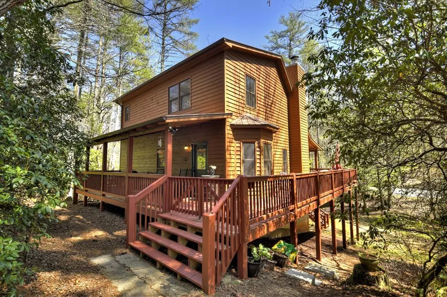 Very private, immaculate, mountain cabin surrounded by a 2.24-acre forest of beautiful trees & mountain laurels. The cabin features three bedrooms, three full bathrooms, a spacious loft, and a game or bonus room in the basement. The great room has a beautiful rock-faced wood-burning fireplace and a cathedral ceiling. The dining area is connected to the great room and features a large bay window for plenty of light. The large master bath features a Jacuzzi tub, a separate shower, and a double vanity. The cabin is situated very close to Poteete Creek at Lake Nottely, offering opportunities for boating, swimming, and relaxing in the mountains. The roads are all paved with no steep hills. This one is well-maintained and move-in ready.