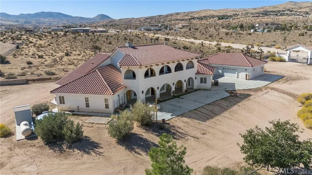 This exquisite property offers a custom Spanish Hacienda style home on a spacious 2 1/4 acre horse property. Boasting 3350 ft.of living space, this home features 5 bedrooms and 4 baths,providing ample room for your family and guests. Situated in Apple Valley, you'll enjoy the incredible views and wonderful weather that this area has to offer throughout most of the year. The property is conveniently located near the mountain communities of Wrightwood & Big Bear,allowing you to easily access their attractions and recreational activities. As you step inside,you'll immediately notice the double-sided fireplace,creating a warm and inviting atmosphere. The open layout of the living areas provides breathtaking views of the valley and allows for an abundance of natural lighting. The hickory cabinets,large kitchen island and granite countertops make the kitchen a chef's dream. Top-of-the-line appliances and 9foot glass face powder cabinets add a touch of luxury. This home also offers multiple storage options, ensuring that you have plenty of room for all your belongings. Two master suites are located on opposite sides of the home, providing added privacy. Both suites feature stone walk-in showers with multiple showerheads and Jacuzzi tubs, offering a spa like experience.In addition to the main residence, there is a detached garage with ample space for cars, toys, and even an RV. The property also features a horse barn with a detached tack and hay area, multiple horse shelters, and a designated parking zone for horses. If you're an equestrian enthusiast, you'll appreciate the proximity to BLM land, allowing you to ride as you wish.This home is ADA accessible, providing convenience and comfort for everyone. With two AC units, you'll be able to regulate the temperature to your liking. The property has its own private septic system and well, ensuring independence and efficiency.The possibilities are endless with this property. Whether you want to run your business, operate an Airbnb, or use it as an event home, this home offers versatility and potential. It's the perfect setting for hosting weddings, family gatherings, or any other special events. Add an ADU, Junior ADU or BOTH making this an income producing home.Don't miss out on this incredible opportunity to own a remarkable property in Apple Valley. With so much to offer, this home is truly a great family home that can accommodate your lifestyle and dreams. Bring your toys,horses and make this your dream property.