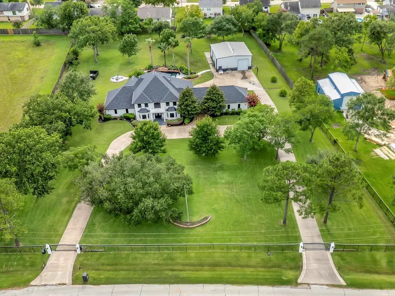 Welcome to 40 Windsong Dr, Friendswood, TX — where elegance, space, and resort-style living await. Nestled on 2.25 meticulously maintained acres, this spectacular estate offers over 5,000 sq ft of luxurious living with 4 bedrooms and 4 baths. From the impressive curb appeal and grand entry to the fresh interior paint and custom finishes, every detail of this home invites you in. The heart of the home is a chef’s dream — a custom kitchen designed for both function and style. Unwind in spacious living areas, retreat to your private primary suite. There is separate quarters w/kitchen and bath located within the metal building. The 3-car garage and whole-home Kohler generator add convenience and peace of mind. Step outside to your own private oasis: a resort-style swimming pool surrounded by lush landscaping — perfect for entertaining or relaxing. This is more than a home — it’s a lifestyle....